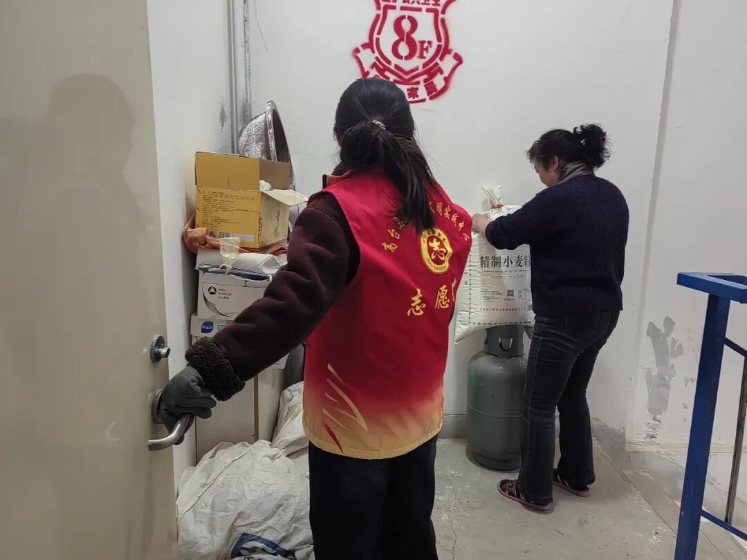 行动开展前,社区网格员、共建单位人员联合小区物业,对小区各楼栋楼梯间、消防通道、单元门厅等公共区域开展“拉网式”排查,详细登记杂物堆放集中点位、物品类型及数量。依托业主微信群、社区公众号推送《文明创建倡议书》《消防安全警示案例》及清理通知,并在小区公示栏张贴公告,组织党员志愿者开展“敲门行动”,逐户向居民讲解楼道杂物堵塞消防通道的安全隐患、文明城市创建的相关要求,动员居民自觉清理个人物品。同时,组建由共建单位干部、社区工作者、支部党员、热心居民及小区物业组成的志愿服务队开展集中清理。