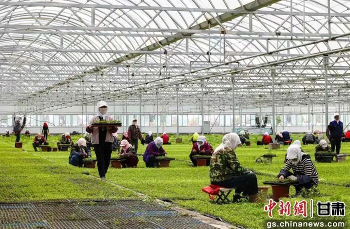 图为高台县温室大棚内的蔬菜育苗(高台县委宣传部供图)